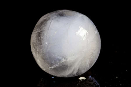 A perfectly round ice sphere on a dark background, showcasing purity and clarity, AI-generated.