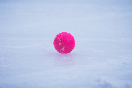 STOCKHOLM, SWEDEN, JAN 22: The official bandy ball on the ice. Hammarby won with 6-1 at Zinkensdamm