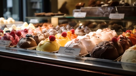 Assortment of Colorful Gourmet Ice Cream Flavors in a Display Freezer at a Gelato Shop AI Generative