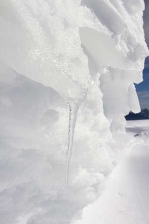 large ice icicles on a rock closeup