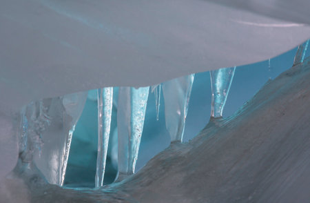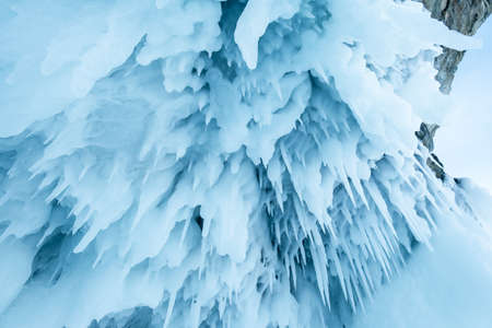 View of icicles on Lake Baikal, Siberia, Russia