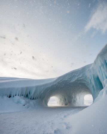 AI Generated. Breathtaking ice cave in snowy winter landscape