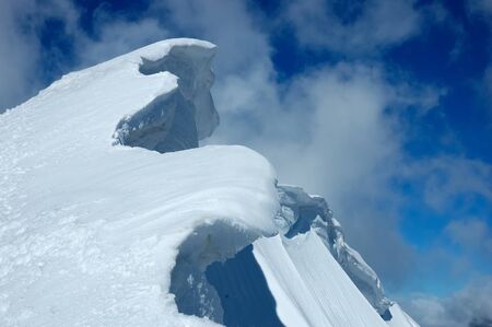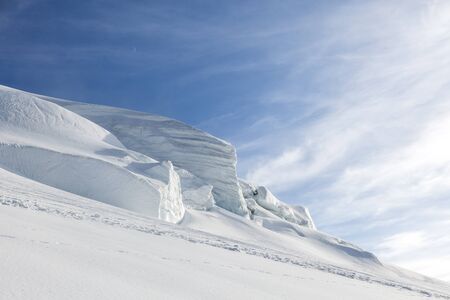 Big snow pack with glacier crevasse on Mont Maudit in the French Alps, Chamonix-Mont-Blanc, France