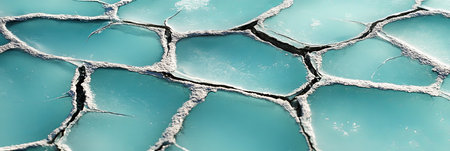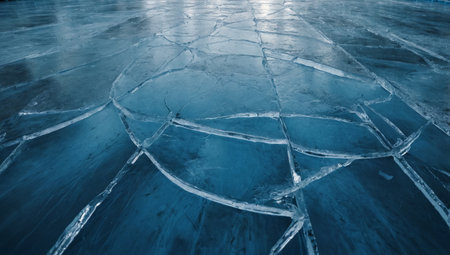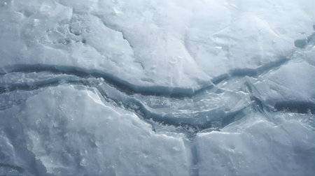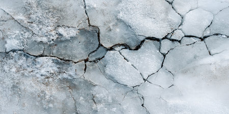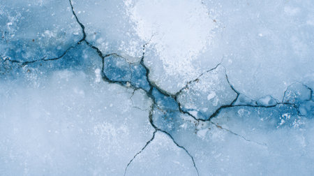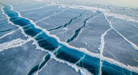 Breathtaking Patterns of Cracked Ice on a Frozen Lake During Winter Season with Deep Fissures