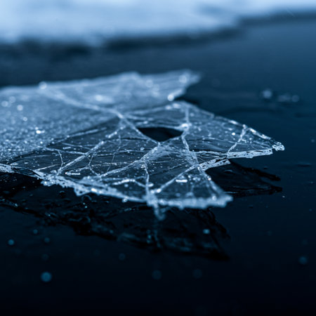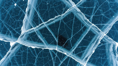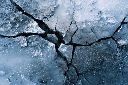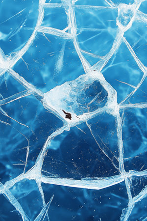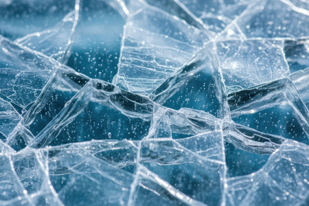 This image features a stunning close-up of a cracked ice surface, showcasing intricate patterns and textures. Ideal for design projects that capture natural beauty.