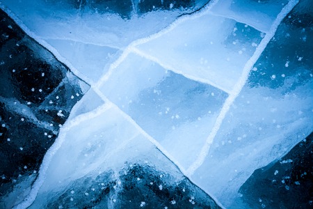 Ice texture background. Natural pattern of cracks in the ice on the river.