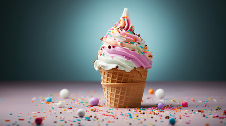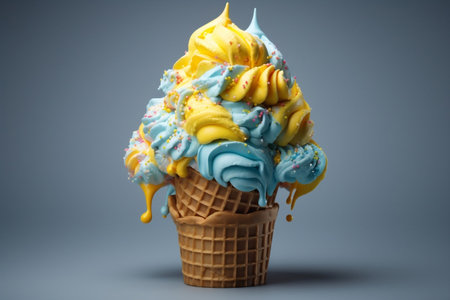 Celebrate summer fun with a colorful, delicious ice cream cone on a bright yellow background