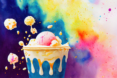Magical, fantasy unicorn ice cream with rainbow colorful background. free copy space. Created by ai