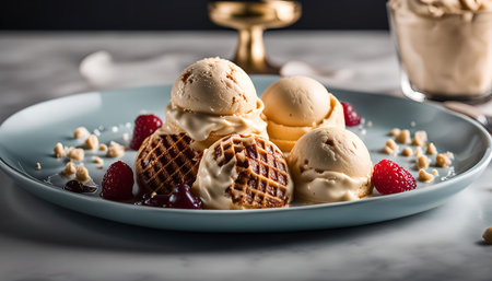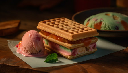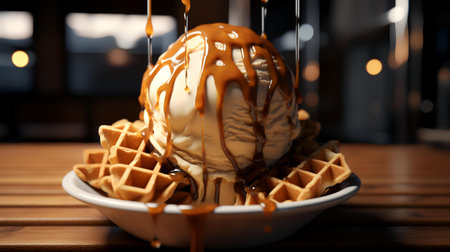 Waffle scoop ice cream. sweet food. Generate AI