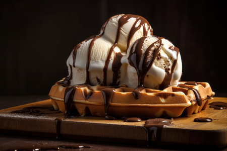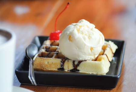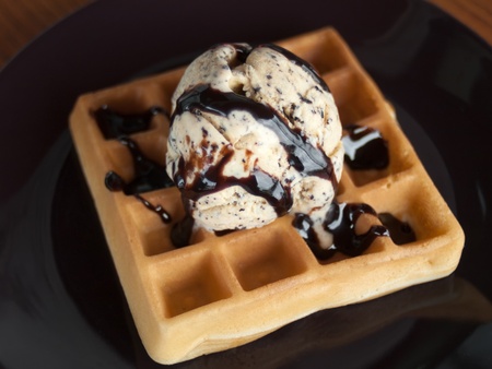 vanilla ice cream waffle and chocolate sauce
