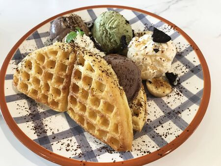 Waffle chocolate with chocolate icecream
