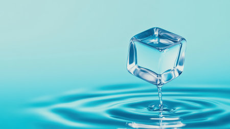A small cube of ice is being dropped into a pool, AI