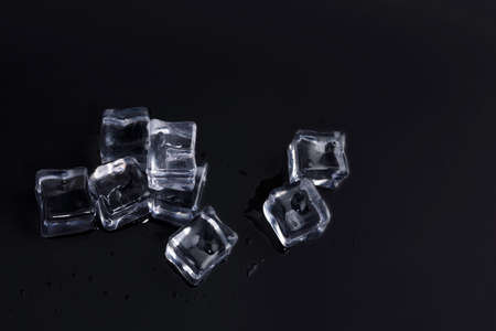 Ice cubes with water drops on black background