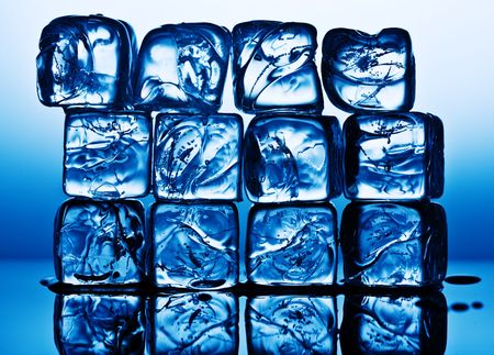 ice cubes on blue background