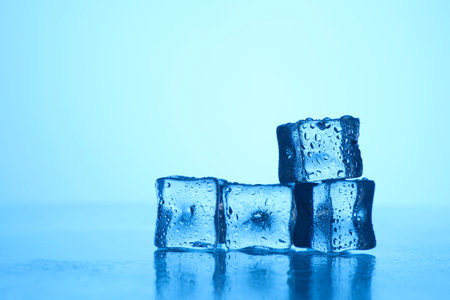 Ice cubes with water drops on a blue background