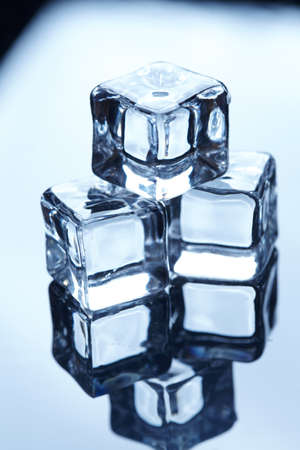 ice cubes on reflection black background.