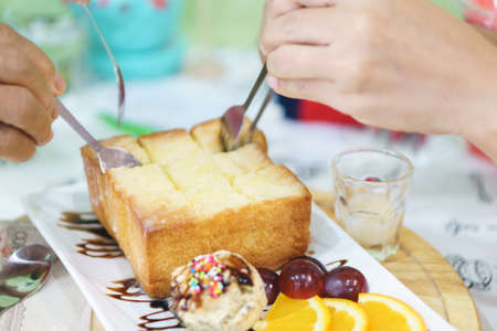 Honey toast with icecream and fruits