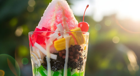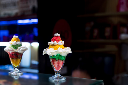 Dessert of Asia. The Asian people eat ice in summer to enjoy fresh hot. Abstract blur.