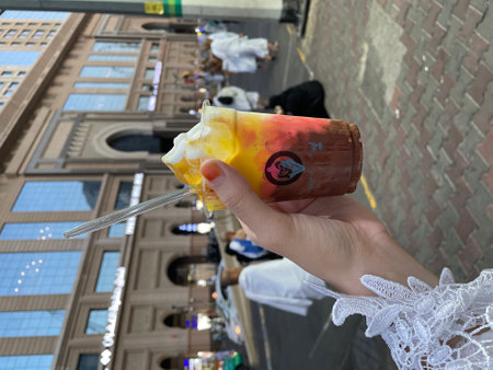 eating shaved ice with colorful dessert, famous Taiwan snacks