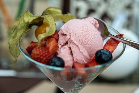 Cool fruit ice cream for summer. Delicious dessert that goes well with every meal.
