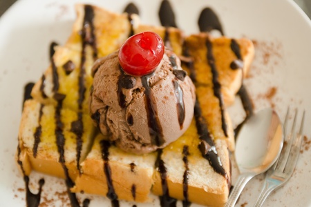 Red Cherry and chocolate icecream on buttered toast