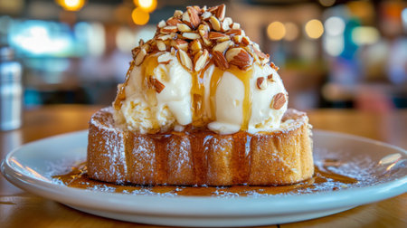 Ice cream on a toasted bread.
