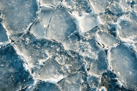 Frost breaking Ice surface pattern, winter season nautural landscape