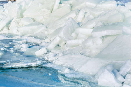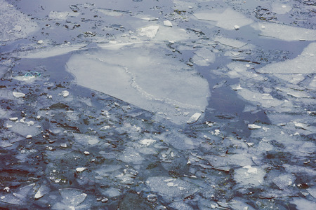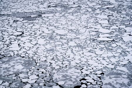 ice blocks floating over the water of a frozen river, background shot