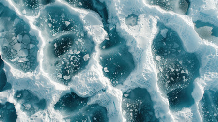 An exquisite close-up image of the exposed ice shell at the North Pole, showing the intricate patterns and textures that emerge as the ice melts