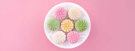 Traditional Japanese dessert confectionery cake wagashi or snow skin mooncake
