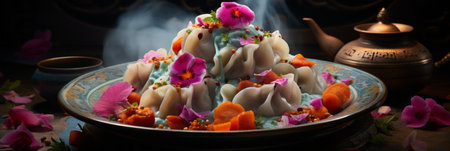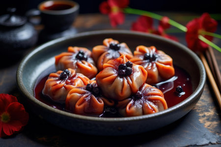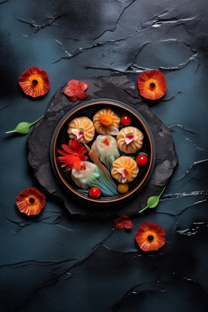 Colorful chinese new year dumpling platter, showcasing variety and symbolism with artistic flair