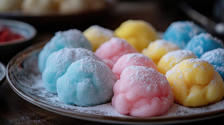Food illustration food, Multi colored Japanese ice cream Mochi in rice dough . Generative Ai