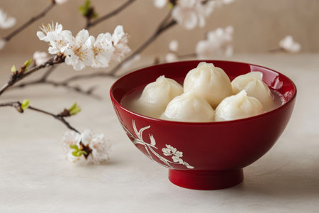 Dongzhi Festival, Celebration, copy space background text, winter solstice festival in China, Traditional Chinese, Shiruko tangyuan rice dumplings,