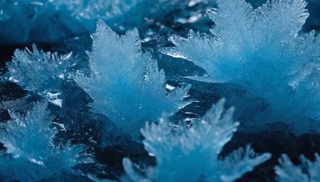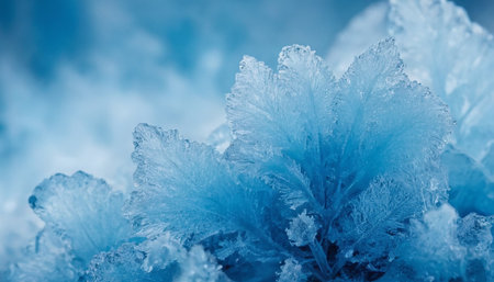 Intricate frozen patterns showcase abstract ice formations in vibrant blue tones