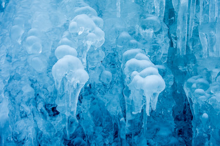 icicles on the ice of Lake Baikal, Siberia, Russia