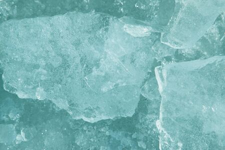 pieces of blue ice among the same blocks of ice. broken ice on a pond