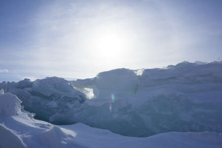 Ice hummocks on the frozen lake Baikal in winter