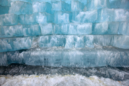 natural background, texture, winter landscape, large blocks of ice with clear blue snow