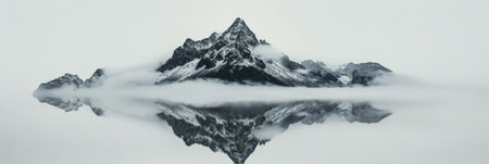 mountain peak in the clouds on a white background, nature series