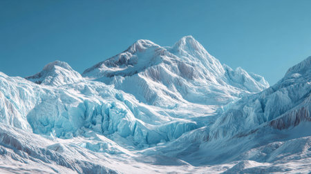Stunning Snow-Capped Mountain Peak Surrounded by Glaciers and Clear Blue Sky for Winter Adventure