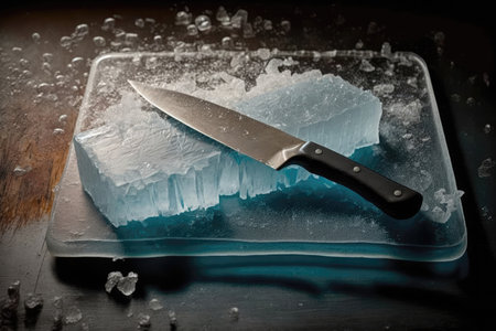 Kitchen Knife Cuts Ice On The Board