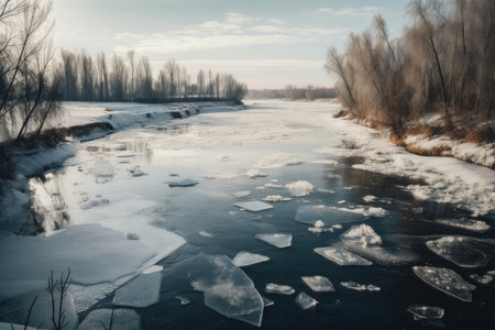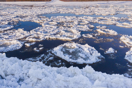 The river is ice floe, after the winter snow