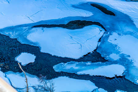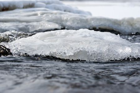 River ice. river in winter. winter creek.