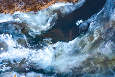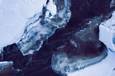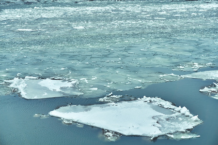 Crashed ice on the river surface. Abstract background