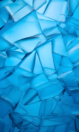 A blue background with many pieces of blue glass. The glass is broken and scattered all over the background