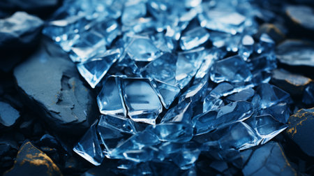 Shimmering shards of blue crystal intersperse with light, creating an enchanting and otherworldly atmosphere. This artistic arrangement captivates the viewer