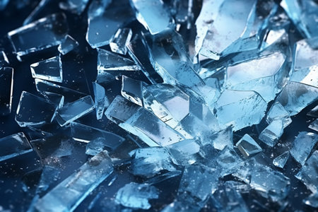 A blue background with a lot of broken glass. The glass is scattered all over the background and it looks like it's been shattered