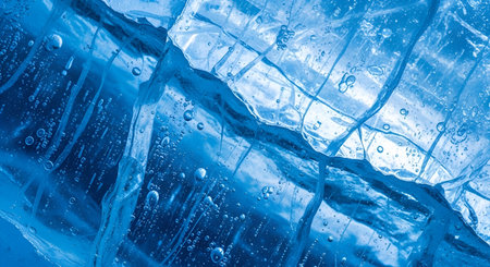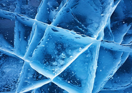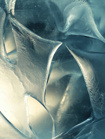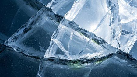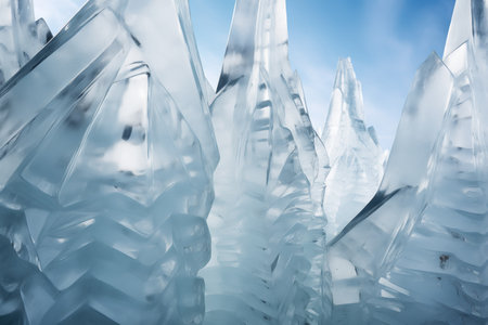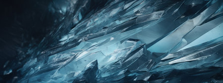 Crystal clear abstract background showcases sharp ice formations with cool blue tones, creating a serene atmosphere ideal for design and artistic projects