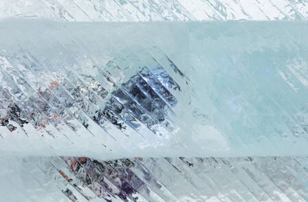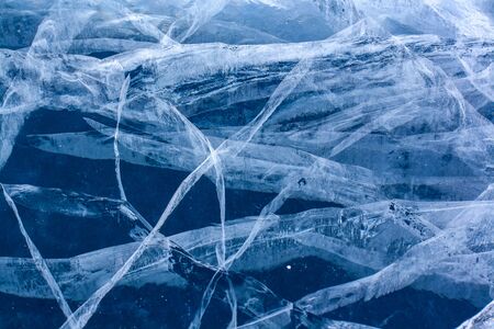 Texture of ice of Baikal lake in Siberia. blue lake ice.