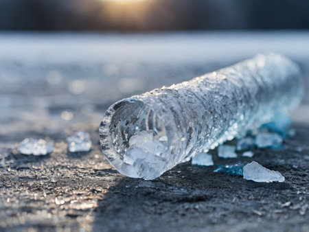 Crystal clear abstract background showcases sharp ice formations with cool blue tones, creating a serene atmosphere ideal for design and artistic projects